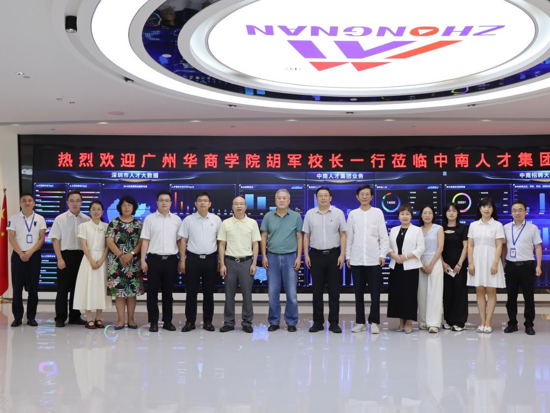 为进一步深化产教融合、搭建人才培养与产业需求精准对接的桥梁,8月21日上午,广州华商学院校长胡军率领副校长范忠宝、余家军,校长助理黄伟新等一行10人,前往中南人才集团开展调研交流,就校企协同育人、资源共享等合作事宜展开深度探讨。中南人才集团董事长杨杰及相关负责人热情接待,双方围绕学生未来发展中心建设、产业学院共建等核心议题深入交流,共同擘画校企协同育人新蓝图。会议伊始,杨杰董事长率相关负责人陪同胡军...