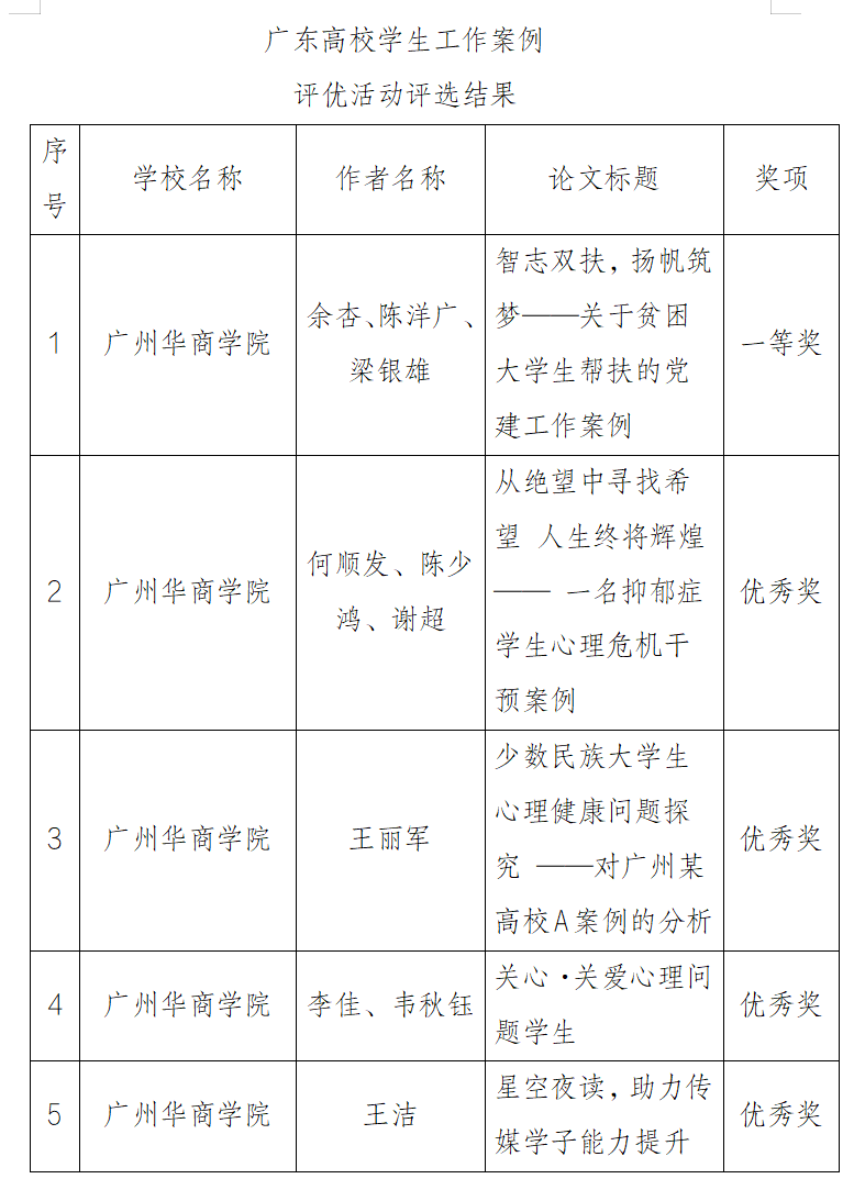近日,由广东省高等学校思想政治教育研究会、高校思想政治工作队伍培训研修中心(华南师范大学)组织开展的2022年度广东高校学生工作案例和广东思想政治工作优秀论文征集活动结果公布。