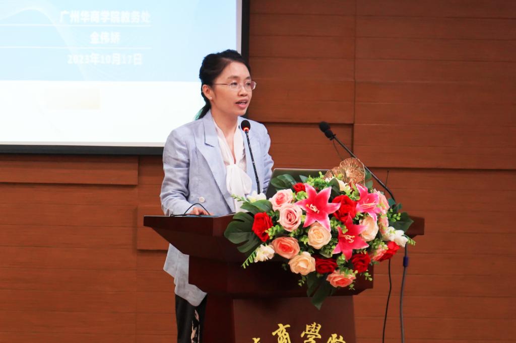 支戈壁副校长从时间和空间两个维度为新教职工进行校史教育,她围绕学校概况和学校“三个五年”发展历史,向各位新入职教职工详细地介绍学校的建设历程与发展节点,并着力阐述了我校师资队伍建设、国际化教育、实验平台建设、科研建设、教学建设与改革等8个方面所取得的突破与创新。支校长强调,建校18年来,学校始终坚持“创百年名校,育华夏英才”的宏伟目标。未来,学校将继续实施“立足大湾区,面向全国,走向世界”战略布局,以服务粤港澳大湾区经济社会发展为导向,形成以商科为主体,文科、工科和其他学科协调发展的办学格局,形成以学习者为中心的个性化教育新形态,构建与未来社会新技术、新业态、新职业相适应的人才培养体系,全面推进具有鲜明特色的高水平应用型大学建设。