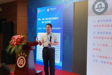 暨南大学经济学院副院长蒋海教授围绕“商业银行数字化转型的风险效应与监管应对”做演讲。蒋教授分别从商业银行数字化转型对风险承担影响和对系统性风险的影响深入浅出地阐述了商业银行数字化转型的风险效应与监管应对。