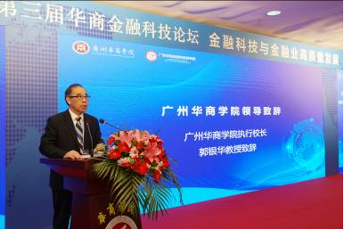 11月23日,由广州华商学院主办,广东华商金融科技研究院、广东乡村振兴金融研究中心承办,广州华商学院金融学院等单位协办的第三届华商金融科技论坛暨粤港澳大湾区金融科技产教融合联盟成立仪式在广州华商学院中央图书馆举行。出席本次论坛的有:广州华商学院执行校长郭银华教授、副校长兼广东华商金融科技研究院院长刘少波教授、人事处彭强处长、教务处傅道忠处长、科研处董建新处长等校内各部门领导以及来自中山大学、华南理工大学、暨南大学等高校的知名金融学者和包括广州南粤国投融资担保有限公司、TCL金服控股、腾讯、同花顺、美林数据等企业的高管。论坛开幕式由刘少波教授主持。
