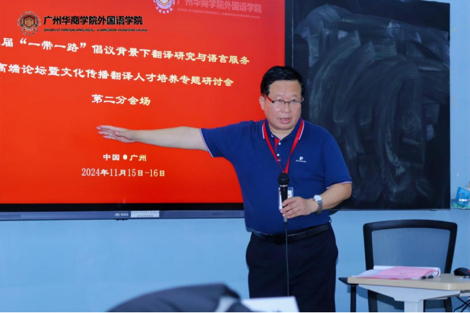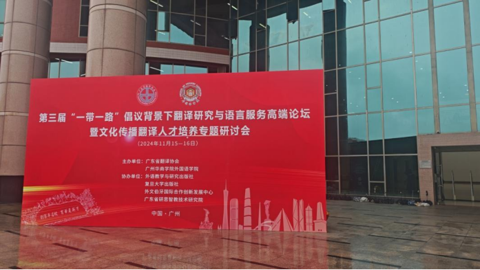 2024年11月15日-16日,由广东省翻译协会和广州华商学院外国语学院主办,外语教学与研究出版社、复旦大学出版社、外文伯牙国际合作创新发展中心、广东省研思智教技术研究院协办的第三届“一带一路”倡议背景下翻译研究与语言服务高端论坛暨文化传播翻译人才培养专题研讨会在广州华商学院举行。来自中国科学院科技翻译协会、中国翻译协会、广东省翻译协会、广东省高级人民法院外事办以及国内近30所高校的专家、学者与研究生230余人出席了研讨会。