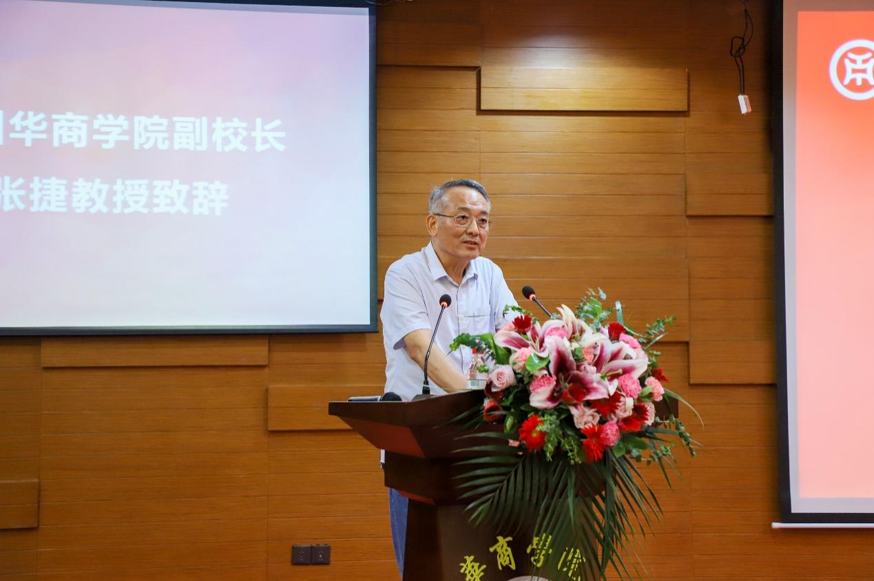 会议伊始,广州华商学院副校长张捷教授为本次活动致辞。他指出,《创业管理》等课程被认定为2021年广东省一流本科课程,是学校深化创新创业教育改革的成果之一。在科技进步、产业升级的新时代,开启创新创业教育改革新征程,学校更加重视学生创新力、创造力、创业能力等综合素质的培养和锻炼,着力促使学科教育与创新创业教育的有机融合,打通创新创业人才培养各环节,以培育更多创新创业生力军,促进地方经济发展和保障就业质量。同时勉励全校师生们,始终牢记我校校训,把开拓进取、创新共赢作为现阶段全校师生砥砺奋进的目标。