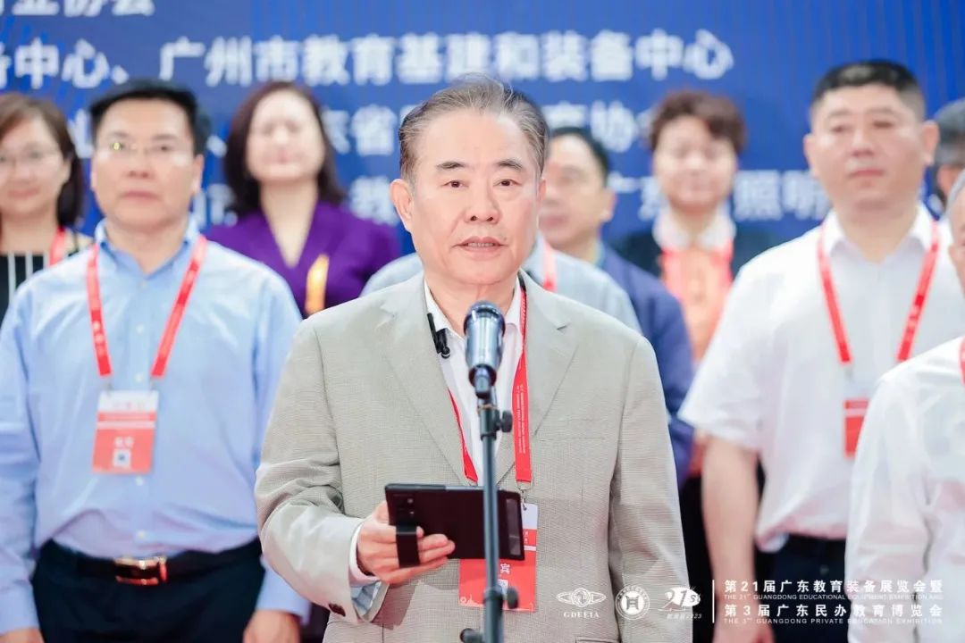 在开幕式现场,中国民办教育协会名誉会长,全国人大常委会原副秘书长、法律委员会原副主任委员李连宁发表致辞。他指出,今年是全面贯彻落实党的二十大精神的开局之年,是实施“十四五”规划承上启下的关键一年,是广东在高质量发展道路上的发力之年。在此背景下,本届博展会参展学校贯彻党的二十大精神,展示立德树人取得的教育成果,深化产教融合取得的高质量发展的办学成果;参展企业突出展示科技教育装备创新发展成果,以互联网、大数据、人工智能等新技术助力教育高质量发展成果。这将进一步推动产教融合、科教融汇,实现多赢发展。