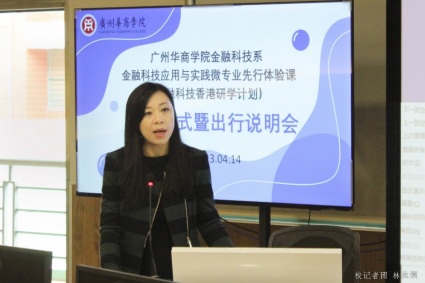 金融科技系谢一颗副主任,从“学”、“访”、“获”三个方面介绍了研学重点,就赴港研学行程、注意事项,从出行安全、仪表礼仪、生活攻略以及联系沟通等四个方面为师生保驾护航。
