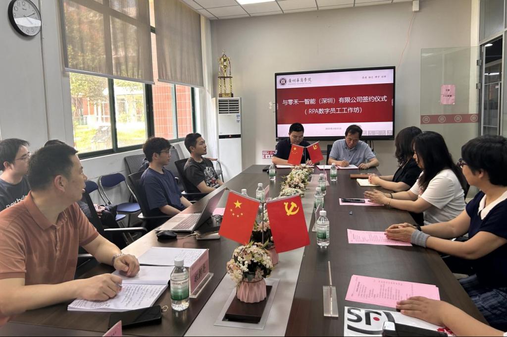 2025年4月21日下午,广州华商学院会计学院与零禾一智能(深圳)有限公司签署RPA数字员工工作坊合作协议,以产教深度融合之笔,共同书写智能时代应用型人才培养的新篇章。广州华商学院会计学院院长姚凤民、零禾一智能(深圳)有限公司总经理杨振、数智会计与商务服务产业学院执行院长陈蒙梦、副院长范卫星、会计学院教师代表魏玲教授、郑朝亮副教授、张馨月老师、胡曼曼老师、湛秀枝老师以及学生代表共同出席本次会议。