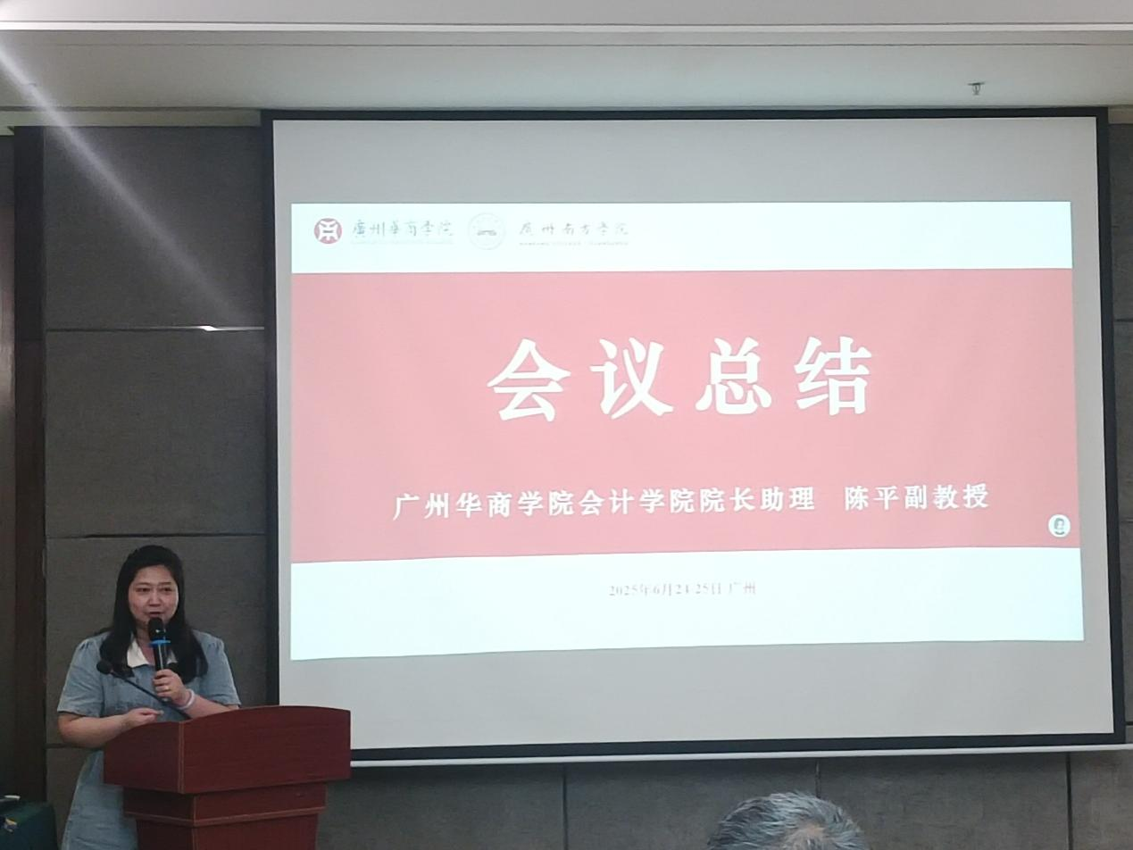 广州华商学院会计学院院长助理陈平副教授对本次论坛进行全面总结。陈平副教授表示,各位专家的精彩分享内容丰富、见解独到,为与会教师带来了深刻的启发和宝贵的经验,让大家受益匪浅。她强调,未来,两校将进一步加强合作与交流,携手共进,共同努力为会计教育事业作出更大贡献。
