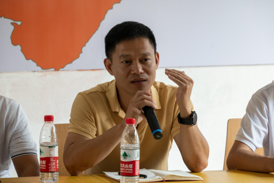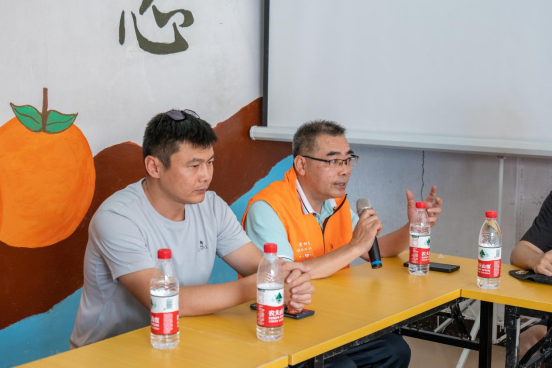 参观结束后,志愿者一行与黄田镇相关领导在社会实践基地办公室围绕黄田镇砂糖橘的品牌建设及营销赋能、黄田镇农文旅融合发展等话题开展座谈会。座谈会上,中共四会市黄田镇党委副书记、佛山市驻黄田镇帮镇扶村梁栋指出,黄田镇是四会沙糖桔的重要产区,是农业类省级专业镇。沙糖桔更是四会的名片,沙糖桔产业升级发展对黄田镇乡村振兴事业意义重大。目前,新一年沙糖桔采摘季开始,黄田镇沙糖桔即将上市。他希望广大青年大学生能发挥专业、发挥优势,为沙糖桔的宣传、销售贡献青春智慧。