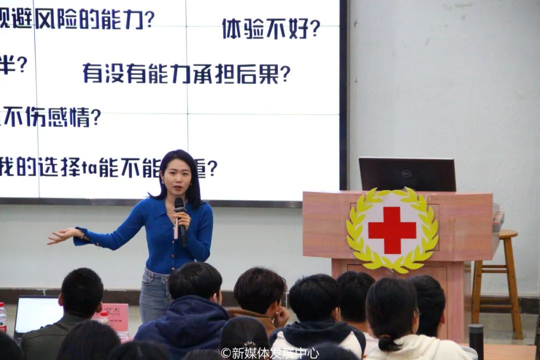 最后,广东省青少年性健康联盟陈家杰讲师邀请同学们现场互动,通过道具进行演示,让同学们在轻松愉快的氛围中认识到正确使用合格的性用品可以有效地预防感染艾滋病。