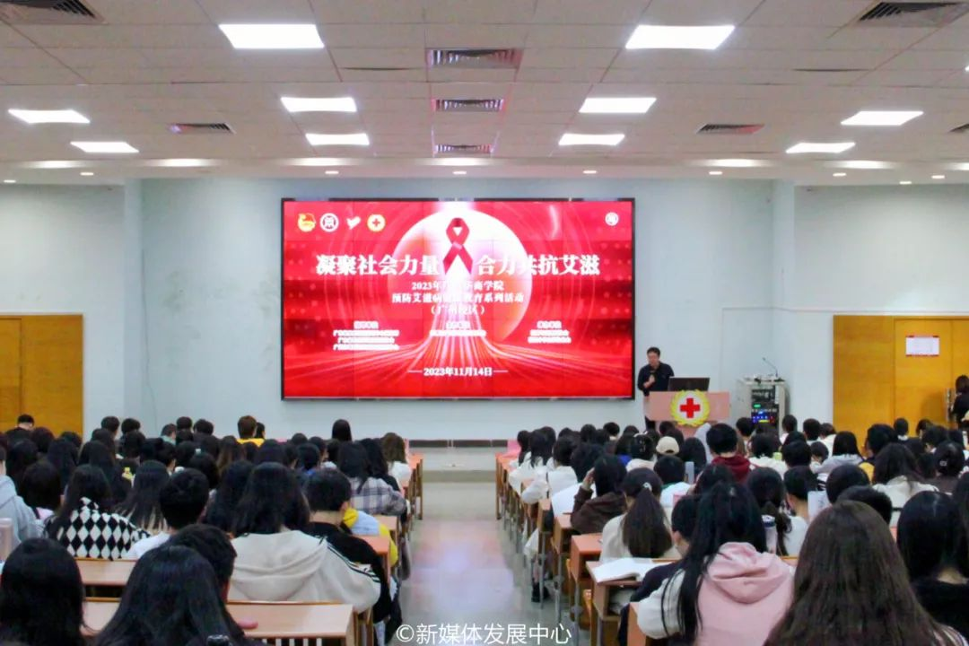 为进一步加强艾滋病防控知识宣传,提高学生健康意识,扎实做好预防艾滋病教育工作,充分发挥我校红十字标准校的积极作用,我校团委以第36个“世界艾滋病日”为契机,积极开展一系列宣传教育活动,引导华商青年关注性健康教育、艾滋病传播与预防等问题,增强同学们的性健康意识。11月14日16:00,在广东省疾病预防控制中心艾防所、广东省性病艾滋病防治协会、广州市增城区疾病预防控制中心指导下,我校团委在广州校区励志楼C408举办“凝聚社会力量 合力共抗艾滋”预防艾滋病健康教育系列活动。本次活动由校团委陈刚书记主持,近350多名师生共同参与。