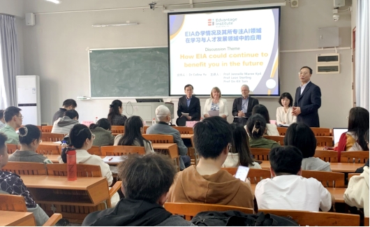 下午第二场活动是以“EIA的办学情况及其所专注的AI领域在学习与人才发展领域中的应用”为主题开展的研讨会。我校国际交流与合作处王文忠处长、国际学院院长回雁雁教授、数据科学学院副院长叶仕通副教授、数据科学学院和金融学院部分教师以及我校学生参与本次研讨会。