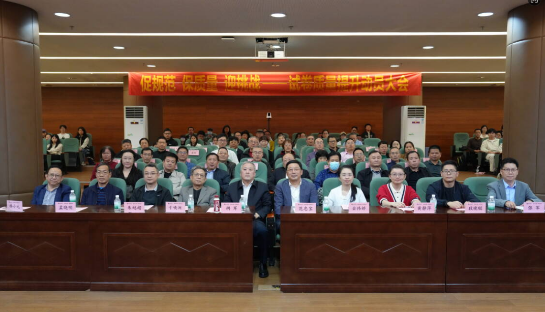 为全面落实本科教育教学合格评估要求,进一步规范试卷管理流程、提升试卷质量,12月2日下午,广州华商学院在广州校区图书馆学术报告厅召开“促规范、保质量、迎挑战——试卷质量提升动员大会”。学校校长胡军,副校长范忠宝,各二级学院负责人,系主任、课程负责人、命题教师代表及相关职能部门负责人线下参会,全体教师通过线上形式同步参会。大会由校长助理张军主持。