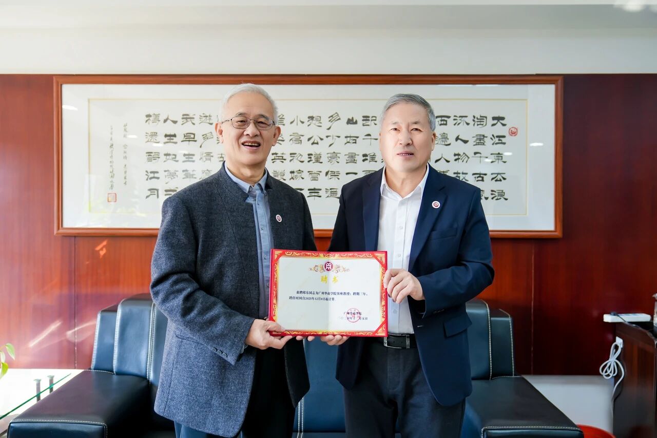 讲座开始前,胡军校长为邱东教授颁发我校客座教授聘书,希望邱东教授常来我校指导,助力我校统计学科的发展。