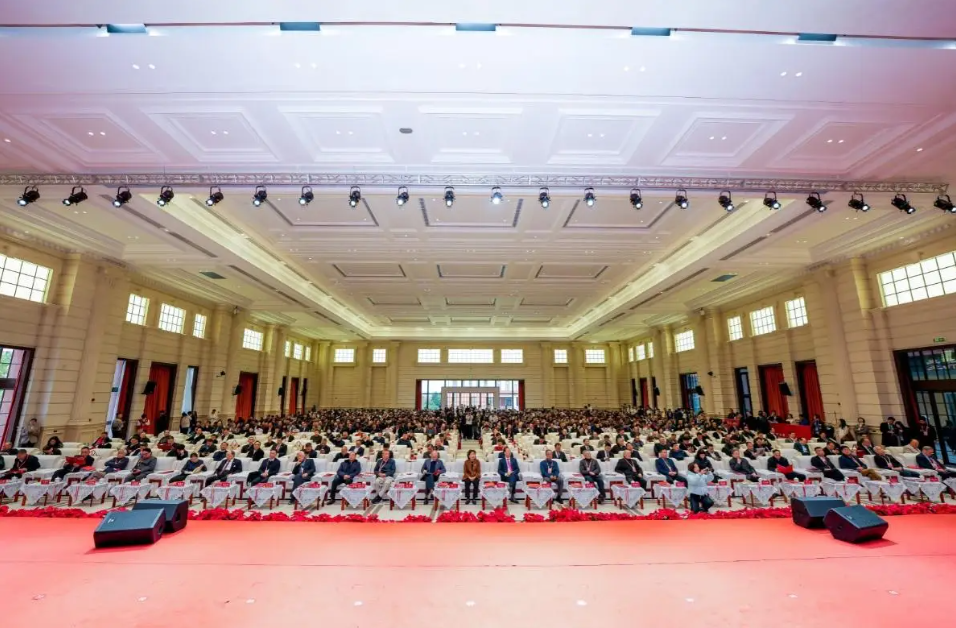 大会伊始,一面具有特殊意义的五星红旗展现在会场中央——它曾于2025年11月07日在北京天安门广场上空迎风飘扬,后被赠予该校,陈列在校史馆,成为华商人爱国主义教育的珍贵资源。