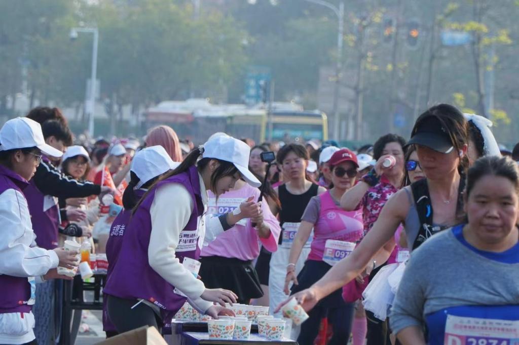 赛道旁,补给站是温暖的港湾。志愿者们早已严阵以待,一排排水杯错落有致,静候着为远方奔来的身影注入能量。每一次迅速的传递,每一句真诚的“谢谢”,与选手脸上绽放的喜悦,交汇成赛道上的青春赞歌。