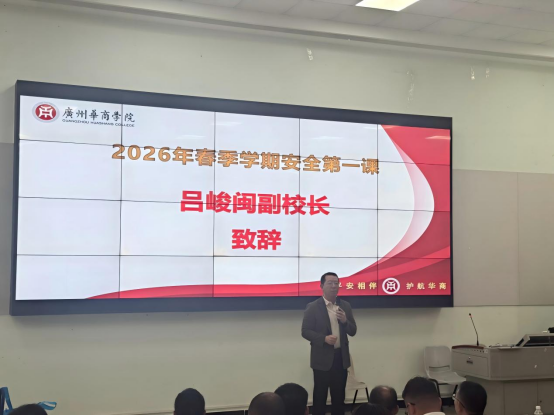 新学期,安全“第一课”先行!为筑牢校园安全防线,提升师生安全防范意识,3月17日,广州华商学院携手广州市公安局增城分局、荔湖街道办,在励志楼开讲2026年春季学期安全第一课,警校同心聚力,为全体华商学子的校园生活筑牢安全屏障。广州华商学院党委副书记、纪委书记、副校长吕峻闽教授,荔湖街道办党工委委员黎榕超常务副主任,荔湖派出所黄晓江教导员出席活动。增城公安平安宣讲团警官现场授课,干货满满,直击校园安全核心问题。