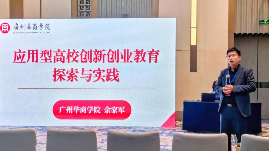 我校副校长余家军在大会上作题为《应用型高校创新创业教育探索与实践》的专题报告。报告紧扣“十五五”规划纲要重大战略任务,重点阐述新一轮科技革命和产业变革的背景下,应用型高校创新创业教育改革的紧迫性与核心方向。他系统介绍广州华商学院“三重构三融合”应用型高校创新创业教育体系的实践与成效,深入分享学校在数字经济、智慧养老、未来产业等重点领域的布局规划与具体举措,展现应用型高校在服务区域经济社会发展中的主动作为与责任担当。