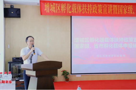 本次政策宣讲会暨申报辅导会由广州市科学技术局、增城经济技术开发区科技创新局主办,广州科技企业孵化协会、增城区高新科技企业孵化促进会承办。广州市科技企业孵化协会秘书长王雪峰、副秘书长陈晓龙、增城经济技术开发区科技创新局副局长卢灵、迅镭(广州)产业孵化器有限公司董事长曾志涛、广州华商学院执行校长郭银华教授、及增城区各孵化载体负责人等参与本次活动。