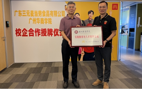 最后,广州华商学院与广东三元麦当劳食品有限公司举行校企战略合作签约仪式暨教学实践基地挂牌仪式。