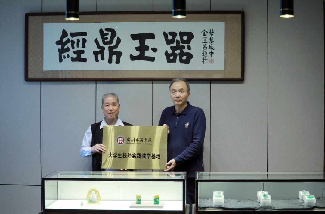 为贯彻落实国家关于深化产教融合有关政策,响应学校的工作要求,促进人才资源转化,培养本科院校应用型珠宝人才,搭建实践教学平台。2023年3月24日,广州华商学院副校长兼人文学部主任王列耀教授带领珠宝学院院长朱晓红教授、副院长张宪法副教授赴揭阳经鼎玉器工作室、“璧合轩”翡翠艺术工作室和聚璟轩玉雕设计工作室举行校企合作签约仪式,共建大学生校外实践基地。参加签约仪式还有传播与传媒学院院长赵维江教授、人文学部副主任陈晔老师、传播与传媒学院院长助理程海涛副教授、李华教授。并举行了中国工艺美术大师张炳光、青年玉雕名师张钦荣(加龍)、青年玉雕名师许群豪聘任仪式,中国工艺美术大师张炳光受聘为珠宝学院客座教授,张钦荣(加龍)和许群豪受聘为珠宝学院行业导师。仪式现场,双方共同挂牌并就合作事宜进行具体对接洽谈。