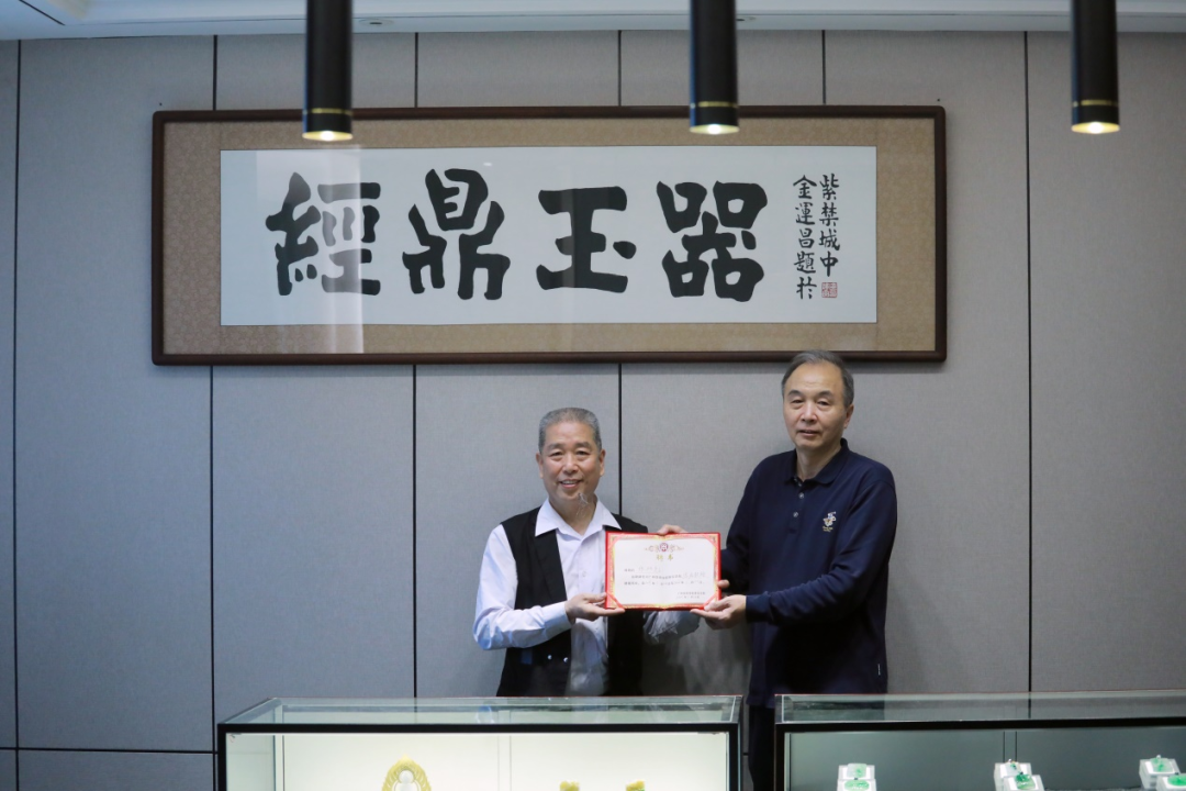 王列耀副校长向“璧合轩”翡翠艺术工作室颁发校外实践教学基地牌匾