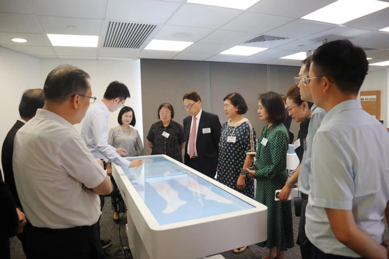 考察期间,各位领导一同参观了香港东华学院医学虚拟实境实验室、医疗健康实验室以及挑战导向学习护理实验室等,并就临床解剖教学、幼儿护理、康复护理、高龄人群护理等实验进行了现场交流。