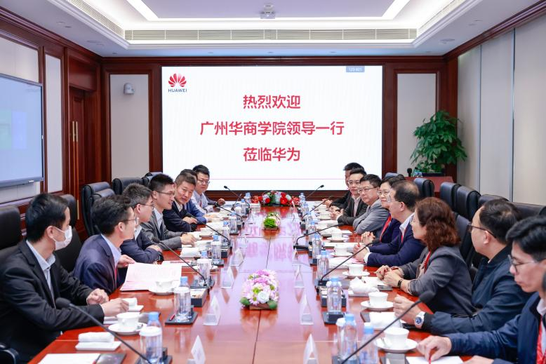 随后,双方举行了座谈会。会上,我校高度重视与华为的合作,并表示希望双方能在产教融合、产学研一体化等方面取得实质性成果;华为代表则详细介绍了华为在校企合作方面的应用案例和技术实力,同时也表示了与广州华商学院在人才培养、科技创新等方面的合作意愿。双方就如何进一步加强合作、推动教育和技术创新进行了深入的探讨和交流,并明确了未来具体的合作内容与合作目标。