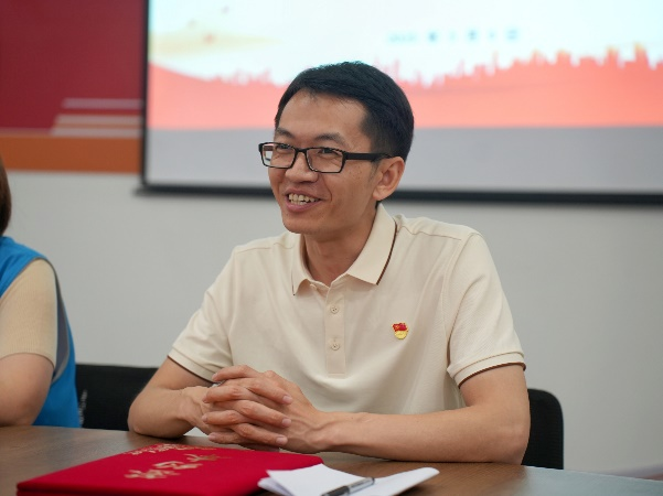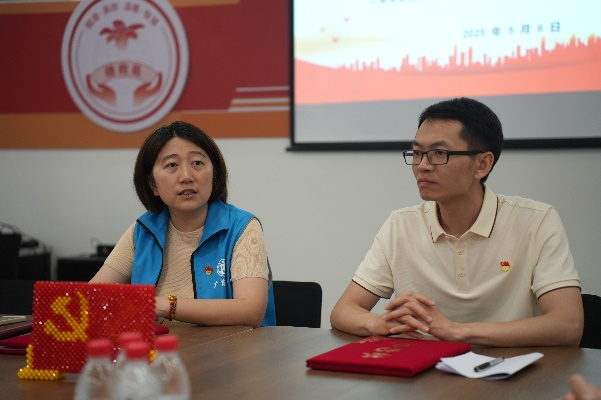 李丹站长发言。李丹站长首先向外国语学院一行的到来表示热烈欢迎,并详细介绍了社区工作规划,以围绕推进“村级服务提质工程”为重心,重点打造青少年成长支持平台,探索未来校社合作方向。一是开展“英语快乐学”课后辅导项目,针对辖区留守儿童提供个性化教学;二是共建“世界小公民”兴趣课堂,融入外语绘本阅读、跨文化体验等特色内容;三是组建大学生志愿服务队,参与社区文化节等公益活动。她特别感谢外国语学院对社区工作的大力支持,相信在双方的共同努力下,必将形成“资源共享、优势互补、双向服务、合作共赢”的良好局面。