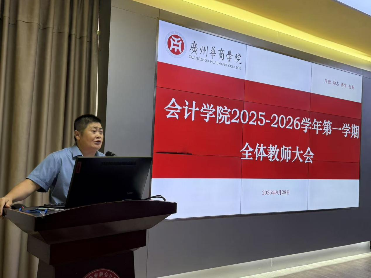 为明确新学期各项工作任务,推进本科教学工作合格评估,确保学院各项工作有序、高效地开展,8月28日上午,会计学院在学院报告厅召开2025-2026学年第一学期全体教师大会暨合格评估专题工作会议。会计学院班子成员及全体教师参加会议,会议由副院长周书域主持。