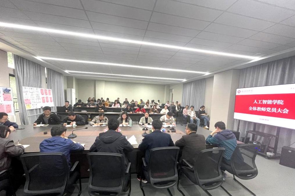 为深入学习贯彻习近平新时代中国特色社会主义思想,全面贯彻落实党的二十届四中全会精神,全面激发党员教师干事创业热情与育人担当,进一步提升党组织的凝聚力和战斗力,2026年3月3日下午,人工智能学院全体教师党员大会在创新楼301室召开。全体教师党员围绕学院重点工作发言,压实党建责任,凝聚发展共识。