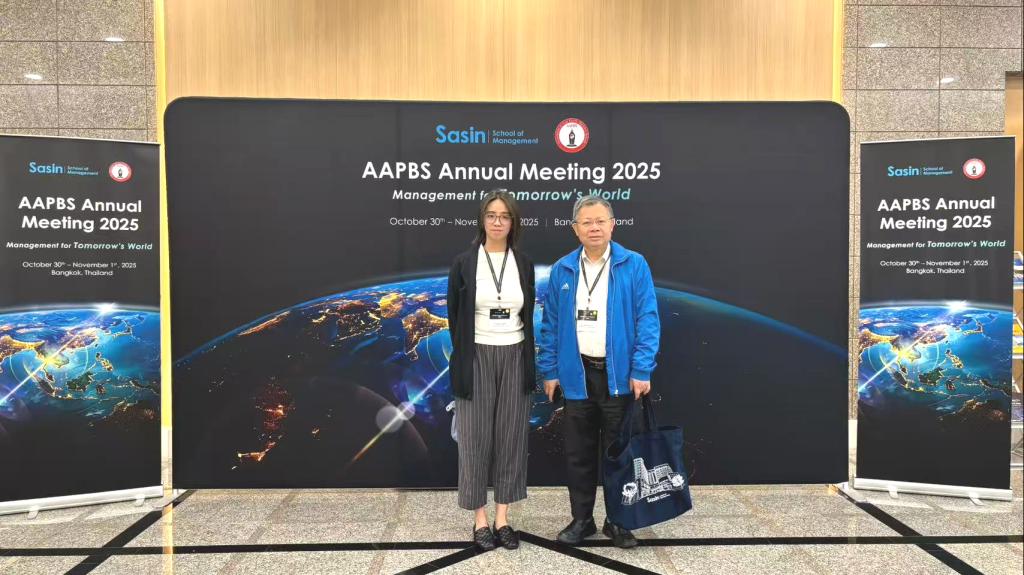 2025年10月30日至11月1日,亚太管理学院联合会(Association of Asia-Pacific Business Schools,简称:AAPBS)年会在泰国曼谷朱拉隆功大学萨辛(Sasin)管理学院举行。我校数字经贸学院院长李广明与国际交流与合作处国际事务科副科长梁驰云应邀出席会议。
