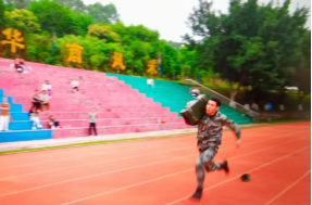 比赛开始前,在校退伍学生带来标准的队列展示,展现了我校退伍学生过硬的军事素质和饱满的精神风貌。示范组为大家展示了搬运弹药箱、30m蛇形跑、单兵个人战术、战场救护、手榴弹投掷等五个科目,成员们个个精神昂扬、动作利落。