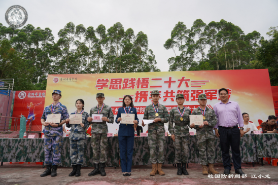 为深入学习宣传贯彻党的二十大精神,推进我校学习贯彻习近平新时代中国特色社会主义思想主题教育持续走向深入,进一步增强广大师生国防观念和爱国意识,5月9日下午,我校在增城校区西操场举办第四届军事技能大赛,本次大赛以“学思践悟二十大,携手共筑强军梦”为主题。党委书记苏宁,党委副书记、副校长王锦秀,党委委员、校长助理许娜,党委委员、武装部部长黄国富,党委委员蒋大锐,团委书记陈刚,各学院学工主任、辅导员,以及武装部老师出席活动。