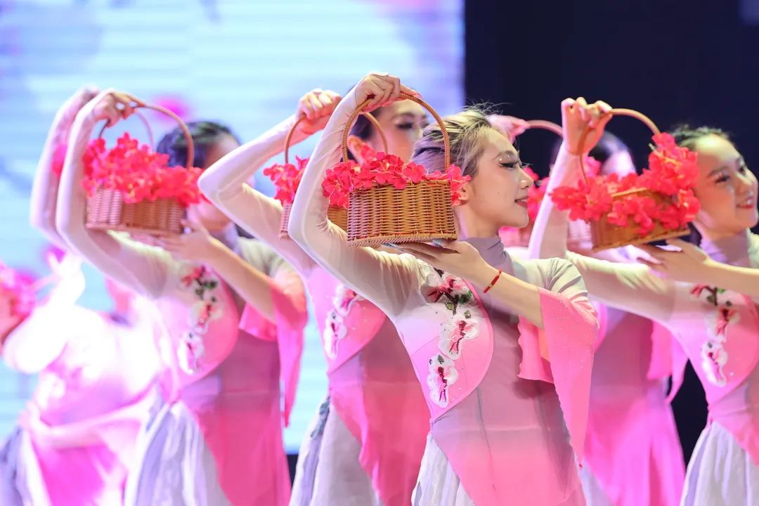 《盛世欢歌》隆重开场。喜庆激昂的乐声响起,舞蹈队的队员们犹如美丽的白鹤,踩着配乐鼓点,轻盈雀跃的舞步纷纷亮相,俨然百花齐放,摇曳生姿。