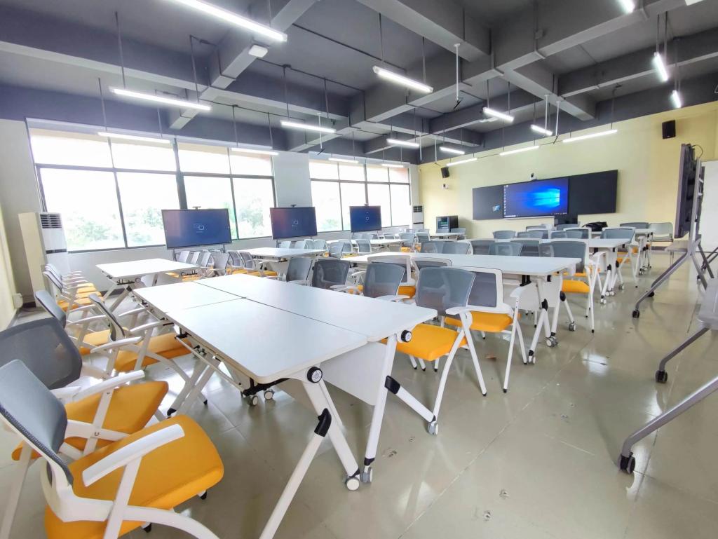 在设备升级与教室改造方面,学校对早期建设的31间实验室老旧设备和部分教学系统进行了更新,从而保障了教学质量。其次,对同声传译实验室进行升级改造,更换木地板与损坏家具。其次,为推动学校课堂教学模式改革,助力我校硕士点建设与一流课程建设,学校在励志楼另建设了10间智慧教室,建成后可实现教学多屏互动、能效管理、数据自动采集等功能,为师生提供积极有效的教学实验环境,能有效激发学生积极探索、积极互动、消除师生“上下级”界限感,从而真正提升课堂教学质量。