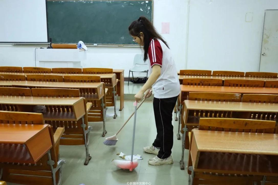 ——2023年下半年中小学教师资格考试(笔试)考场清扫志愿活动。9月15日17:45,组织180名志愿者清理教资笔试考场。志愿者们自带清洁用具,认真进行垃圾清扫、物品整理等,为考生提供卫生、干净的考试环境。