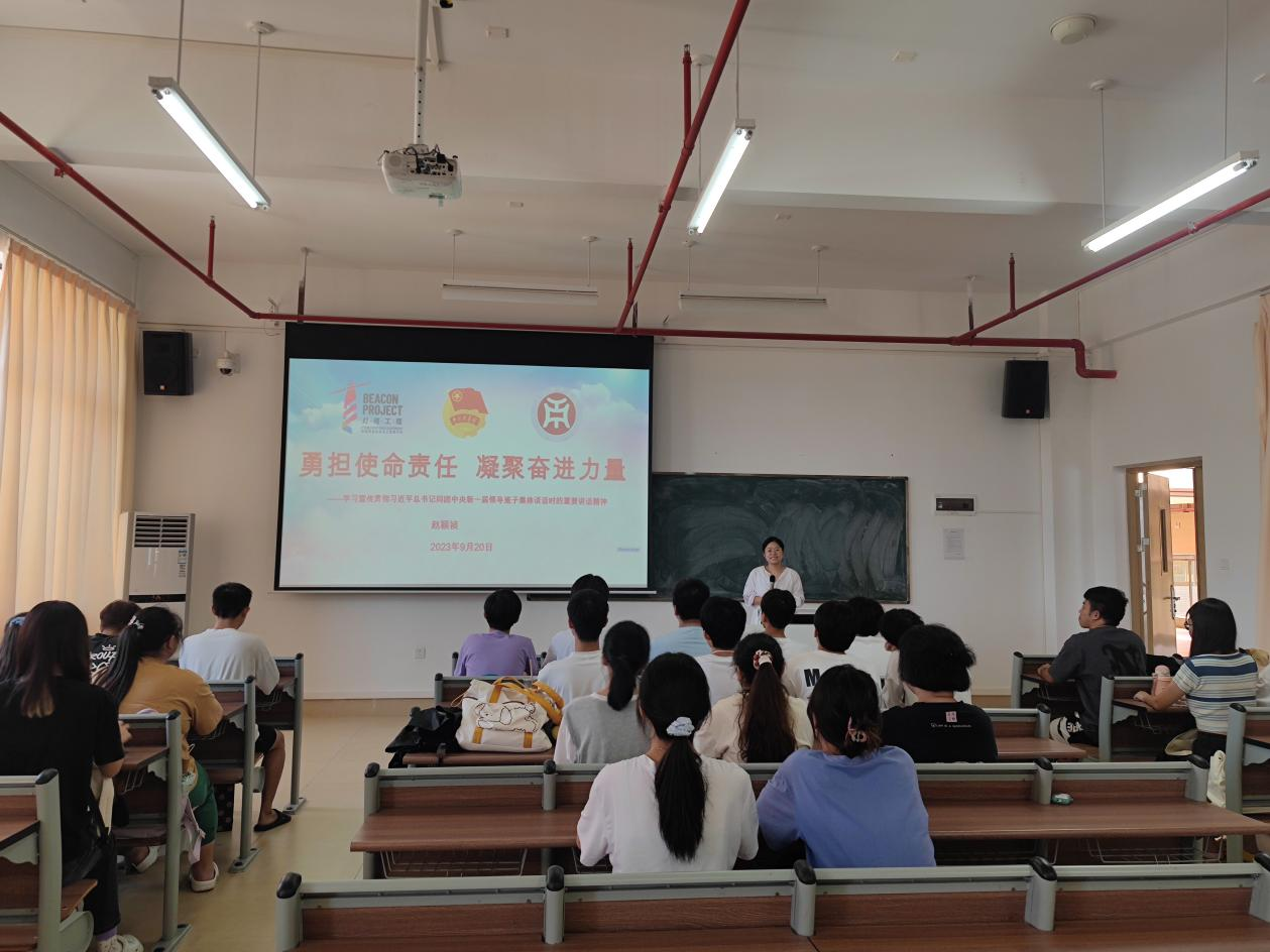 为认真学习习近平总书记在同团中央新一届领导班子集体谈话时的重要讲话精神,加强青年学生的思想教育,厚植爱党、爱国、爱社会主义的情感。9月,管理学院团委面向双校区青年团员开展“学习习近平总书记同团中央新一届领导班子成员集体谈话时的重要讲话精神”主题团课。团委书记徐煜忻号召管理学院的团员青年要在日常生活中刻苦学习、积极进取,坚定理想信念、培育高尚品格、练就过硬本领、勇于创新创造、矢志艰苦奋斗,毫不动摇地听党话、跟党走。罗玉凤副书记强调,同学们要认真深刻领会其中的丰富内涵和精神实质,旗帜鲜明讲政治,不断提高政治判断力、政治领悟力、政治执行力,以青春奋斗姿态挺膺担当。学院团委副书记魏巍指出,在全面贯彻落实党的二十大精神开局之年,习近平总书记对共青团工作发表重要讲话,有重大深远的战略考量,同学们要始终走在坚定拥护“两个确立”、坚决做到“两个维护”的前列,立志做有理想、敢担当、能吃苦、肯奋斗的新时代好青年。