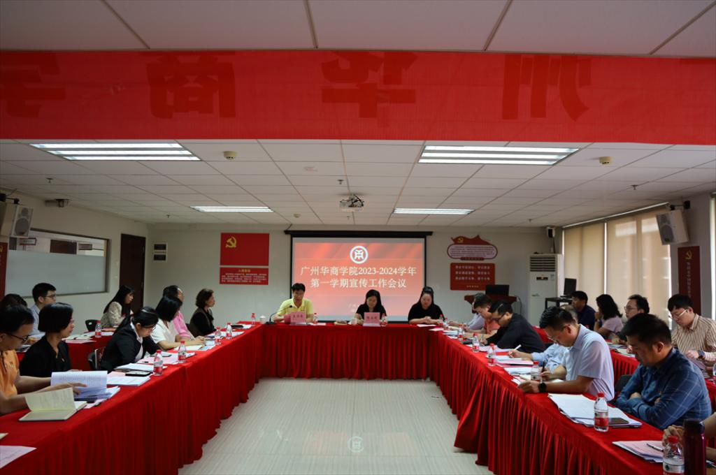 刘苗部长汇报了广州华商学院2023年上半年宣传工作总体情况,重点从强化政治引领、加强舆论引导、加大对外宣传、深化精神文明建设等方面总结了上半年特色亮点工作及目前存在的问题,分析研判了第四季度意识形态工作,并就做好本学期宣传思想工作各项重点任务进行安排部署。
