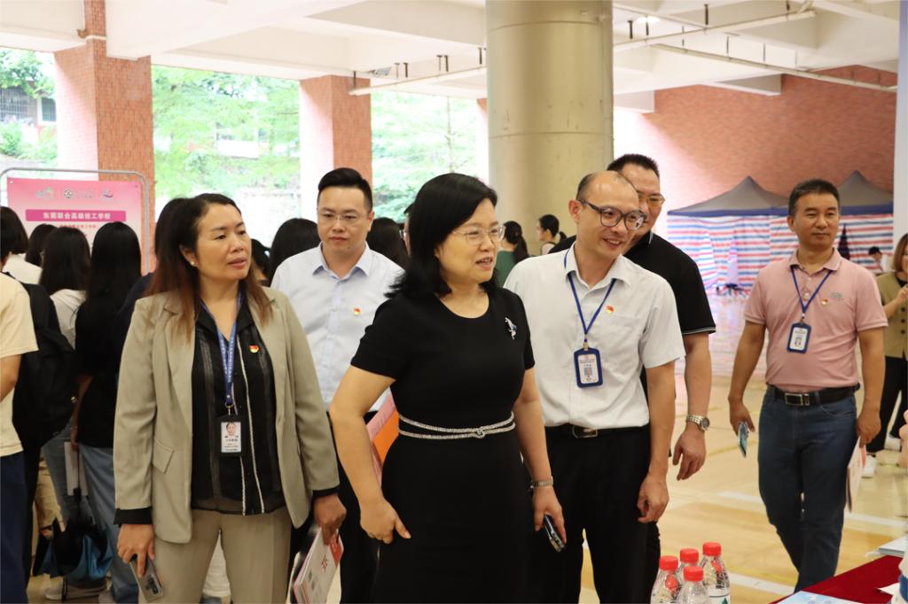 招聘会上,我校党委书记陈玉欢、校长助理黄伟新、就业指导中心主任曾龙威等与东莞市人社局职业介绍服务中心副主任赖润坤一行莅临现场关切指导,与招聘企业和应聘学子亲切交谈。此次招聘会共有20家东莞企业参会,为我校毕业生提供就业岗位超过100个,总需求人数超540人,现场入场人次超600人次,咨询和服务人次数506次,收到简历数414份,达成就业意向111人,预录用人数83人。