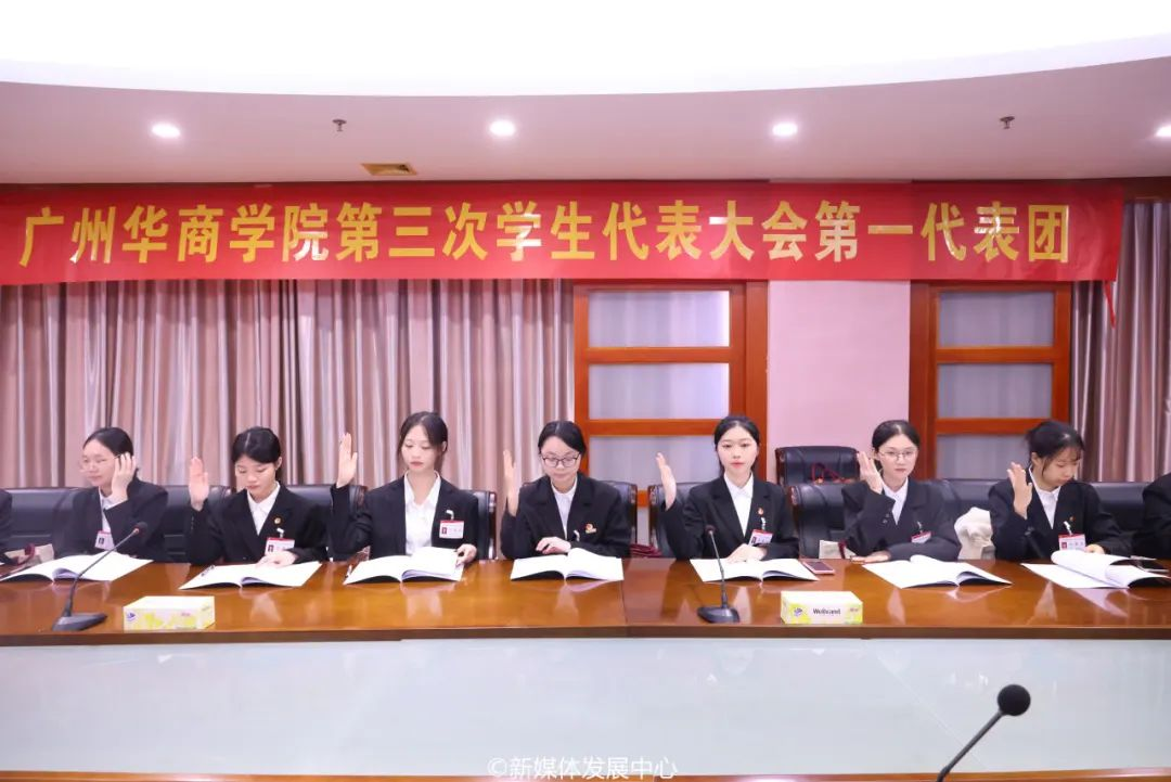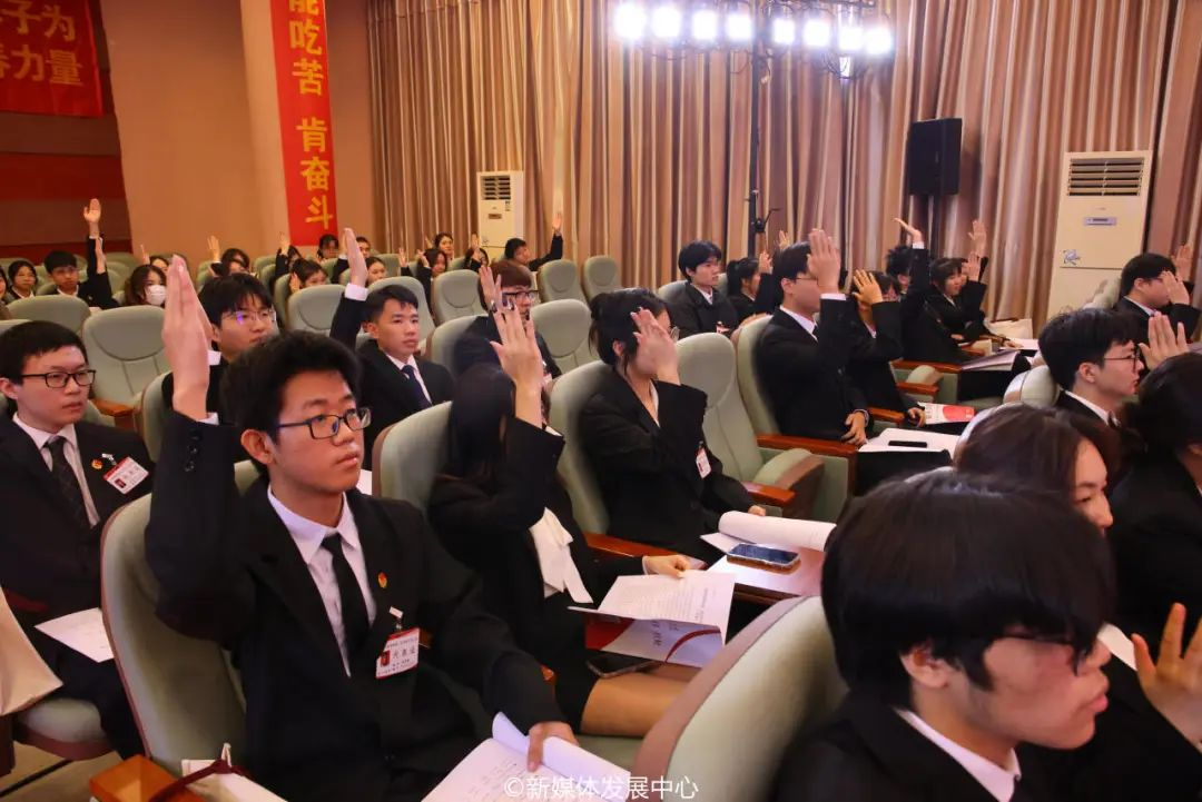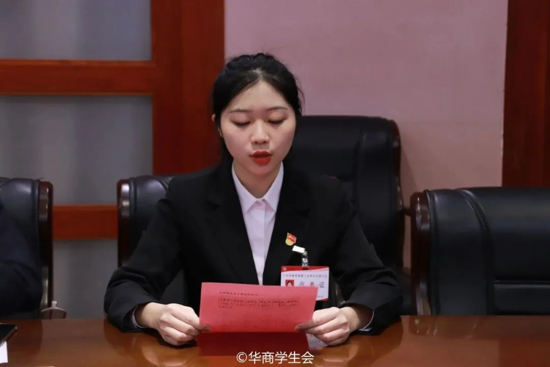 新当选主席团成员尤晓雯表态发言。广州华商学院第三届学生会将以此为基点,全面学习宣传贯彻党的二十大精神,高举习近平中国特色社会主义思想伟大旗帜,秉承全心全意为同学服务的根本宗旨,坚定“从同学中来、到同学中去”的工作方向,努力提升学生会组织的同学满意度、大局贡献度和社会认可度,树立富有理想、关心同学、清新阳光的组织形象。