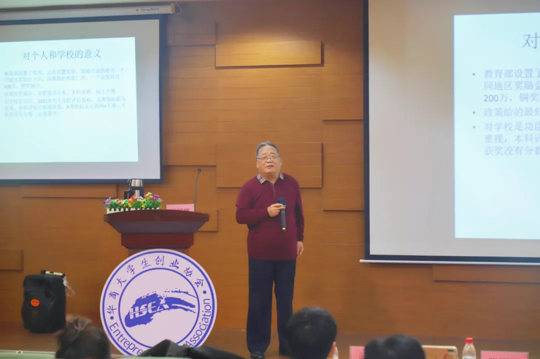 讲座伊始,张耀辉教授阐述了参加创新创业赛事的重要性。他指出,中国国际大学生创新大赛是目前含金量高、关注度高、全赛事排行第一的大赛,学生能通过参加此类大赛锻炼实践能力、增强综合素质。张教授鼓励华商学子积极报名参赛,科学有效打磨参赛项目,不断提升项目质量。