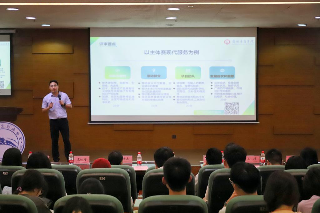 袁仕海副院长深入解读了大赛的分类,以主体赛现代服务为例,解读大赛的评审标准和流程。他表示,评审团队将严格遵循公平、公正、公开的原则,从项目的创新引领性、带动就业能力、项目团队、发展现状和市场前景等多个维度进行综合评估。他结合具体案例,向同学们详细阐述了如何在参赛项目中体现这些要点,以及如何更好地准备和打磨参赛项目。希望参赛者能够积极展示自己的创意和实力,争取在激烈的竞争中脱颖而出。