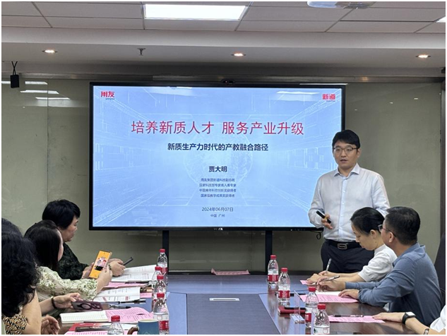 2024年6月7日上午,广州华商学院与新道科技股份有限公司(以下简称“新道科技”)举行了主题为“教育数智化,启新向未来——新质生产力时代下的产教融合新模式”的交流会。广州华商学院党委书记陈玉欢、副校长许娜,相关主要职能部门及二级学院负责人参加此次会议。此次会议旨在深化双方在教育数智化领域的合作,共同探讨产教融合的新模式,展望未来教育的发展趋势。
