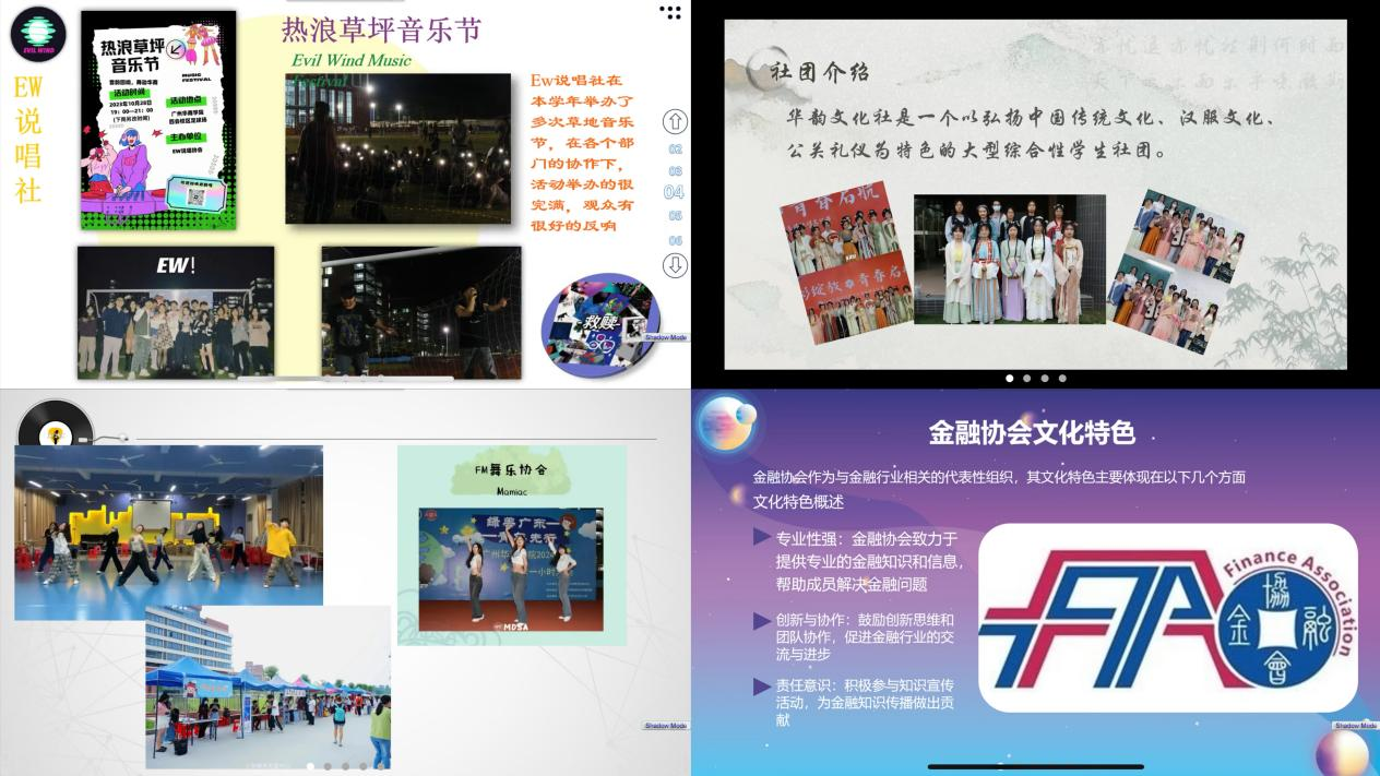 各学生社团负责人依次围绕基本情况、思想引领、实践活动、特色活动、深化改革等方面,分享过去一年的经验做法和精彩瞬间,明确下一步工作计划和发展方向,展现华商学生社团积极向上的精神面貌和专业扎实的综合素质。