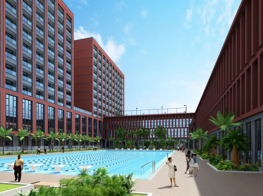 广州华商学院体育中心总建筑面积约3.8万平方米,内含篮球馆、羽毛球馆、游泳馆、健美操馆、武术馆、台球馆、媒体发布中心、室内恒温泳池等八大场馆,配套客房、教室活动中心、自助餐厅等设施。建成后,可为华商师生员工提供优质的体育设施及住宿服务,提升华商在体育版块的综合实力。