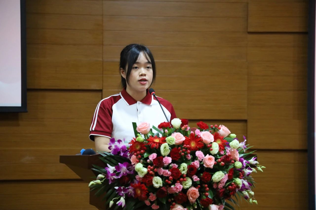 学生代表陈静发言,并代表全校学生对给予支持与帮助的师长们致以诚挚的节日祝福与衷心感谢。她表示,在学校无微不至的关怀与老师们无私奉献下,她成长为一名光荣的共产党员,并收获国家奖学金、十佳优秀共青团干部等多项荣誉。在今后的学习工作中,无论她身处何方,从事何种职业,都将铭记母校的培养之恩、老师教诲之情。