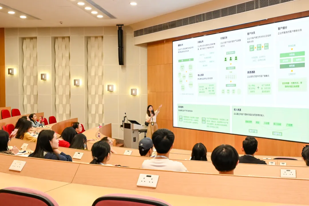 左沛鑫博士以商业模型的基础知识为切入点,深入讲解了商业模式的定义、四个核心部分、商业模式画布以及客户价值主张等关键概念,并指出客户价值主张对企业能否吸引并留住客户起着重要的影响。同时,左博士引用不同产业的实际案例与学生分析产品全价值、优势差异点和共鸣点,构建出强而有力的客户价值主张。