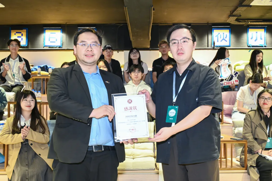 讲座结束后,澳门城市大学国际培训与测试中心为研学团队师生颁发课程结业证书,我校与澳门城市大学国际培训与测试中心交换纪念品。