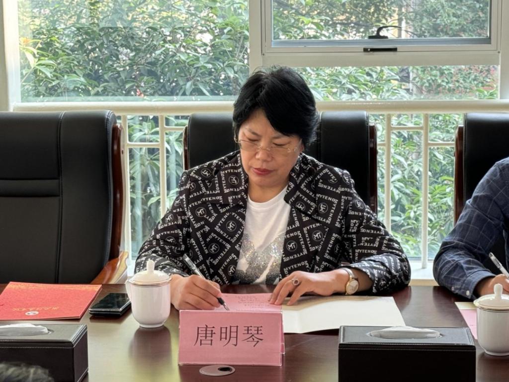 广州华商学院产教融合办公室主任唐明琴教授在讲话中对湖南信息学院领导的热情接待表示感谢,并祝贺其在本科教学工作合格评估中取得高分佳绩。她介绍了广州华商学院的办学历史与学科发展特色,并指出,当前学校正处于迎接教育部本科教学工作合格评估的关键时期,希望通过此次交流机会,能够深入学习和借鉴湖南信息学院在合格评估、产教融合,尤其是产业学院和实践教学基地建设上的宝贵经验,为华商将来的合格评估和产教融合工作提供有益的参考借鉴。