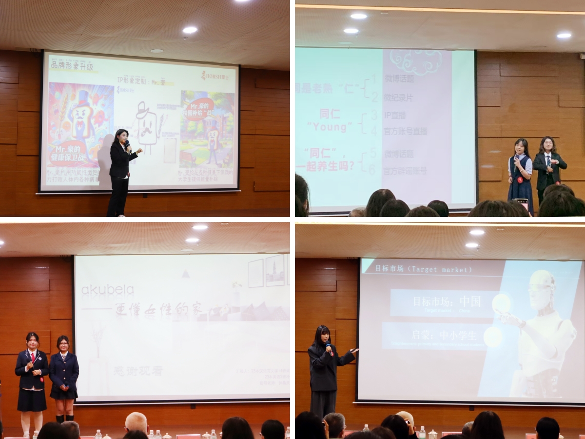 12组选手依次上台,通过精心制作的ppt和充满自信与激情的中英文演说,向评审和观众展示了他们的策划方案。从市场分析到财务预测,从竞争对手分析到营销策略,每个部分都经过精心设计,力求在有限的时间内给评委和观众留下深刻印象。